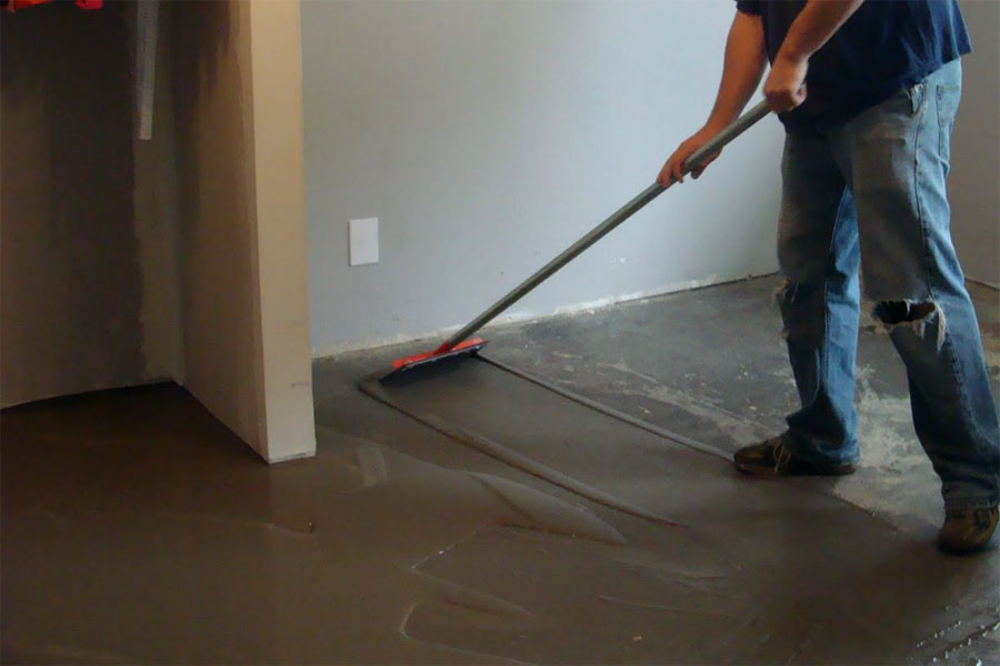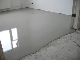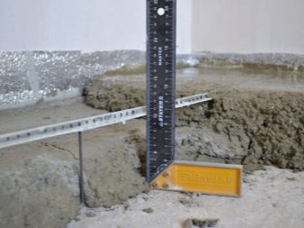 Wenn der Betonboden im Raum uneben ist, empfiehlt es sich, ihn leicht zu "reparieren". Richtig, aus der Sicht der Handler, verwenden Sie eine zusätzliche Schicht der Krawatte. Ein kleiner Teil der Lösung reicht aus, um diesen Nachteil zu beheben. Die nächste Stufe beginnt, nachdem sie vollständig trocken ist.