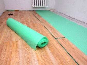 Ein anderes synthetisches Material wird als Basisschicht - Polystyrolschaum verwendet. Im Verkauf kann es in Form eines Akkordeons gefunden werden, es gibt auch fortgeschrittene Versionen mit einer Wärme reflektierenden Folie.Dieses Material ist einfach zu installieren, es schützt die Diele vor Feuchtigkeit, hat gute geräuschmindernde Eigenschaften, speichert Wärme. Leider hat er auch sein Minus - das ist ein hoher Preis.