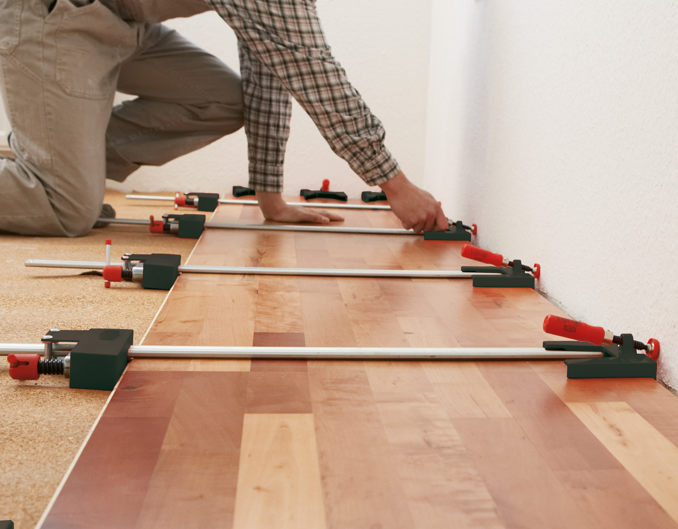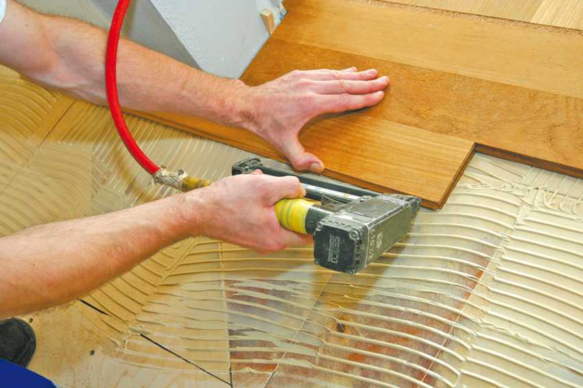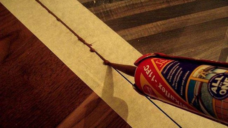 Wenn der Kleber durch die Kanten ragt, muss er entfernt werden. Nach dem Einbau des Bodens werden alle Nähte mit Dichtmasse abgedichtet. Die Fertigstellung eines Parketts erfolgt nach fünf Tagen Wartezeit.