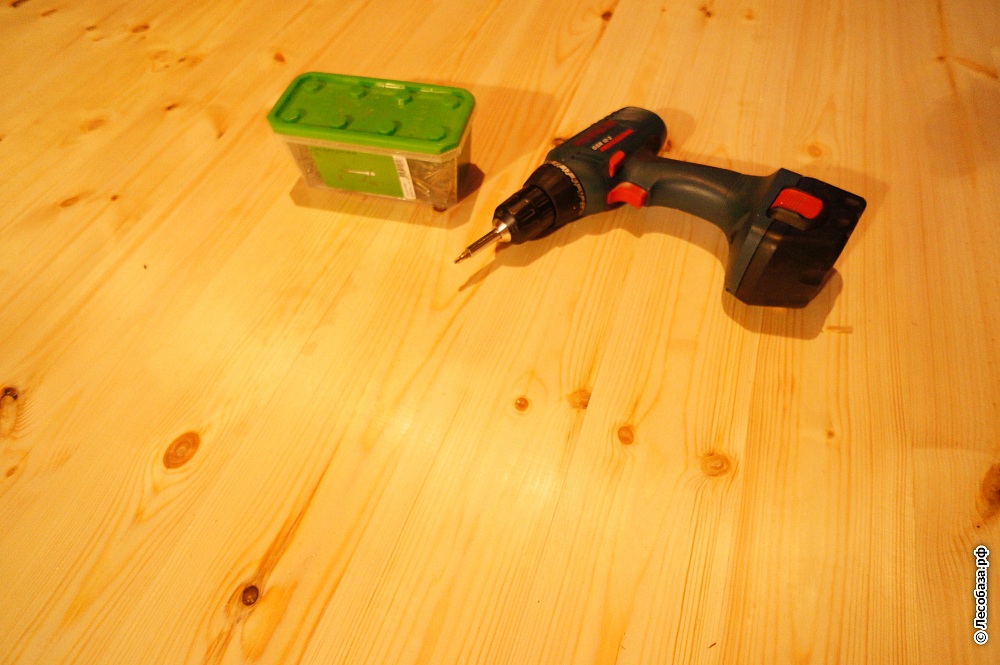 Wenn die Haut nur mit Hilfe einer Verriegelungsverbindung an der Wand und insbesondere an der Decke befestigt wird, fällt eine solche Struktur wie ein Kartenhaus auseinander.Es ist voller Verletzungen und Abschürfungen. Daher werden in jede Bodenplatte zusätzlich Schrauben eingeschraubt.