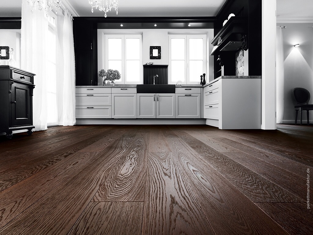 - In Studio-Apartments Es ist sehr wichtig, nicht zu vergessen, dass die Parkettplatte keine hohe Feuchtigkeit verträgt, und daraus folgt, dass es in der Küche oder im Flur ratsam ist, fliesen- oder feuchtigkeitsbeständiges Parkett zu verlegen. Das Andocken kann in diesem Fall auf irgendeine bequeme Weise erfolgen. Die Wohnung ist meistens so ein Übergang im Flur, weil, wenn Sie die ganze Zeit mit nassen Schuhen auf die Diele treten,dann wird es in kurzer Zeit unbrauchbar.