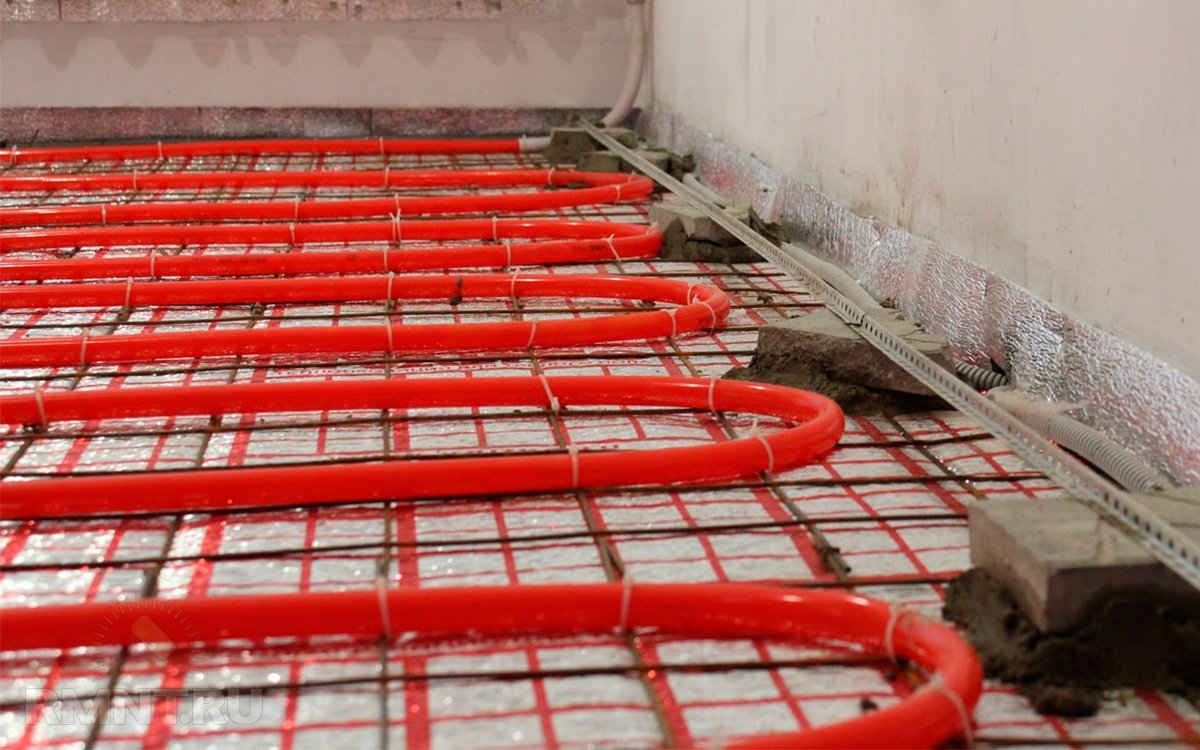 Nach allen Verbindungsschritten prüfen Sie den Betrieb der Fußbodenheizung. Wenn die Erwärmung gleichmäßig erfolgt, wird oben eine Sperrholzschicht angebracht. Es ist auf ihm, dass die Diele später installiert wird.