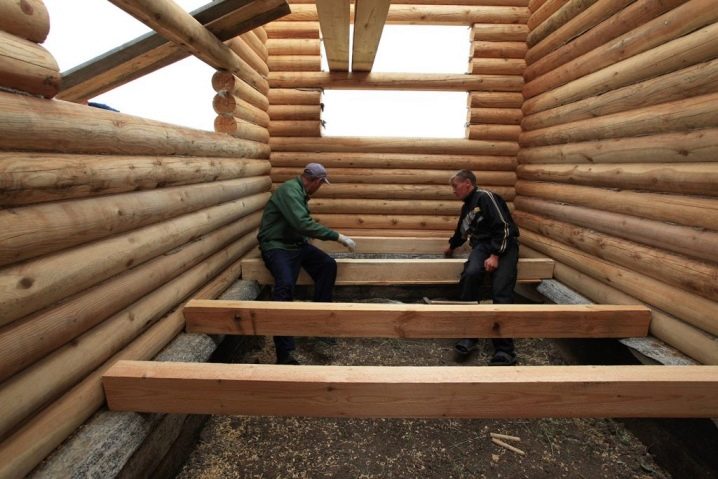 Wenn das Haus aus Holz ist, kann der Tiefgang entlang der Tragbalken installiert werden.Balken spielen in diesem Fall die Rolle von Lag, was bedeutet, dass Sie dadurch viel sparen können. Aber denken Sie daran, dass pAbstand zwischen den Balken sollte klein seinandernfalls wird es notwendig sein, eine zusätzliche Basis aus der Verzögerung aufzubauen.