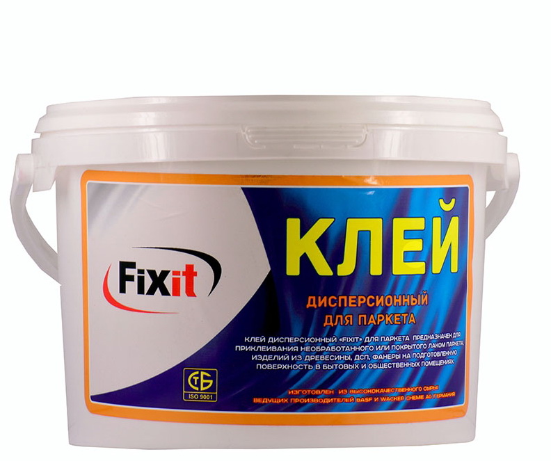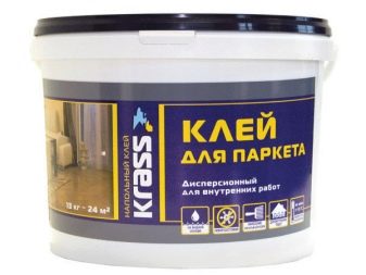 - Dispersionskleber Hergestellt auf der Basis von Wasser mit Zusatz von Kunstharz. Daher ist es umweltfreundlich und ungiftig. Im Geschäft finden Sie eine große Auswahl dieser Mischung, aber es unterscheidet sich in den Prozentgehalt in der Zusammensetzung des Wassers. Klebmasse wird verwendet, um feuchtigkeitsbeständiges Sperrholz unter Parkett zu verbinden, ansonsten können weniger haltbare Holzarten (Apfel, Birne, Buche, Erle) anfangen zu verrotten und sich zu verformen.
