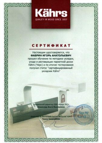- Jedes Parkett muss ein Qualitätszertifikat haben. Dies ist der Schlüssel zur Langlebigkeit.