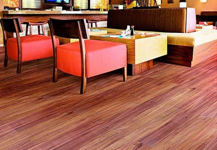 Es hat ein schönes Design, passt schnell. Hergestellt aus homogenem Polyvinylchlorid - 80%, die restlichen 20% - verschiedene Zusatzstoffe (Pigmente, Weichmacher, Stabilisatoren, Naturquarz, Vinyl).
