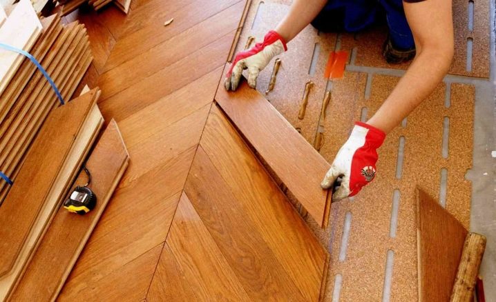 Wenn Sie das Parkett auf einen warmen Wasserboden legen, empfehlen Experten, die schwimmende Estrichmethode mit Hilfe von Klammern zu verwenden, die notwendig sind, um die Bretter miteinander zu verbinden. Brackets regulieren die Ausdehnung und Kontraktion von Holz mit Änderungen in Feuchtigkeit und Temperatur. Das Parkett ruht ohne Befestigungselemente auf dem Sockel. Wenn der Boden altes Parkett ist, muss er entfernt werden. Es kann mit Pilzen infiziert und verdorben sein. Vorher ist es notwendig, die Sockelleisten und Schweller zu demontieren. Es ist sehr schwierig, geklebtes Parkett zu reinigen, dafür benutzen sie einen Meißel und einen Hammer.