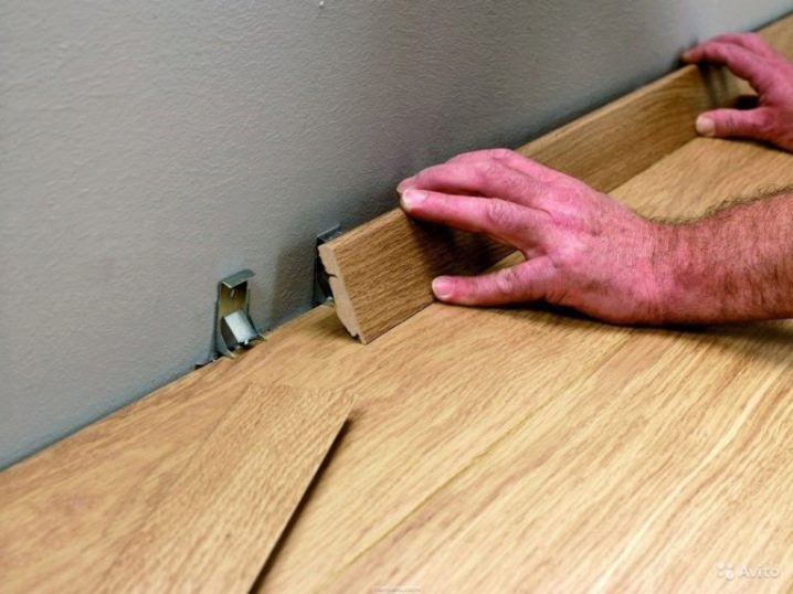 Auf dem Markt sind Holzleisten mit verdeckter Verbindung zu den Halterungen und Kabelkanälen zu sehen. Sockelleisten sollten aus der gleichen Holzart hergestellt und von derselben Partie bezogen werden.