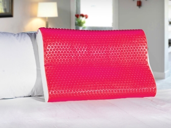 - Kontur Pink. Kissen mit einer Rolle. Eine gute Möglichkeit für Liebhaber, auf ihren Seiten zu schlafen. Auf der einen Seite hat das Kissen Bio-Gel-Füllstoffe, die eine kühlende Wirkung haben. Zusätzlich hat die rosa Seite dieses Kissens Ausbuchtungen, die während des Schlafes eine Mikromassage des Kopfes und des Halses erzeugen und dadurch den Blutfluss zum Gehirn sicherstellen. Auf der anderen Seite ist das Kissen mit einer Schaumschicht ausgestattet, die einen Memory-Effekt hat. Dieses Modell ist komplett hypoallergen, hat hervorragende anatomische Eigenschaften. Kissen mit Gel-Füllstoff wird die ganze Nacht kühl.