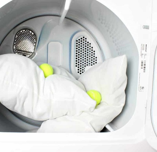 Es ist erlaubt, ein solches Produkt mit einer Maschine zu waschen, aber unter der Bedingung, dass der Modus so sanft wie möglich ist, nicht mehr als 30, maximal 40 Grad (mit starker Verschmutzung). Eine geringfügige Komplikation ist, dass Sie die automatische Maschinenextraktion nicht verwenden können: der Füller kollabiert sofort und bröckelt, und das Kissen selbst wird deformiert, so dass es unmöglich sein wird, seine frühere Form wiederherzustellen.