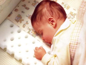 Produkte für Babys haben oft zwei Rollen: klein und groß. Wenn das Kind gerne auf seinem Rücken schläft, legen Sie einen Schaft, der kleiner ist unter seinem Hals; Wenn es auf der Seite liegt, dann benutze einen großen. Für Kinder, die am meisten Schlaf auf dem Bauch leiten, ist es besser, ein solches Attribut ohne eine Rolle zu kaufen.