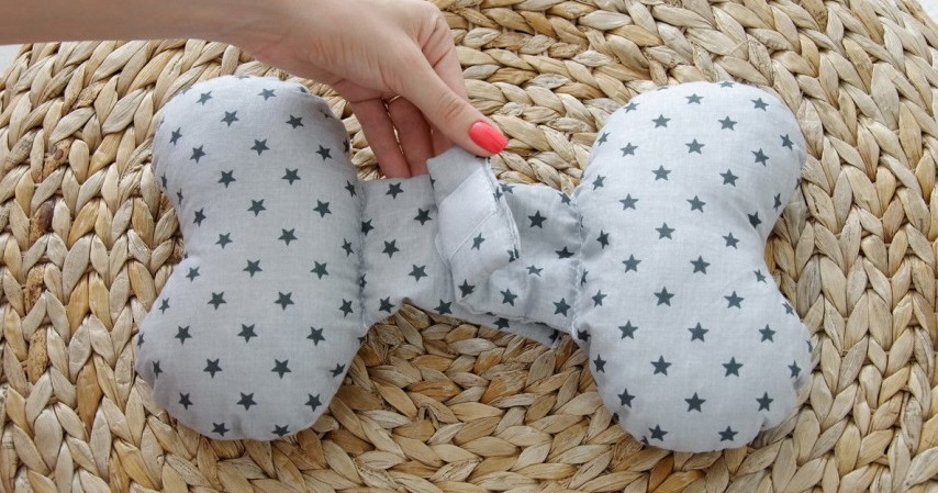 - Schmetterlings-Kissen: die häufigste Art dieses Produktes. Dies ist ein Ring mit einer Vertiefung in der Mitte. Mit diesem Formular können Sie Ihren Kopf intakt halten. Daher ist diese Art von Zubehör gut in der Diagnose von Torticollis, zervikalen Verletzungen zu verwenden. Geeignet ab dem 28. Lebenstag.