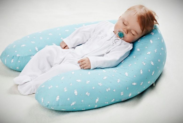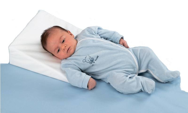 - Das Kind spuckt oft: Solch ein Kissen hilft, die Position auf der Seite zu fixieren, was eine Aspiration mit dem Inhalt des Magens verhindert.