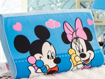 Wählen Sie ein Kissen, achten Sie auf seine Größe. Die Standardgröße beträgt 40 × 60 cm, aber achten Sie auf die Breite der verwendeten Matratze. Solche Produkte unterscheiden sich in einer geringen Höhe, die die Hälfte einer Kinderschulter nicht überschreitet.
