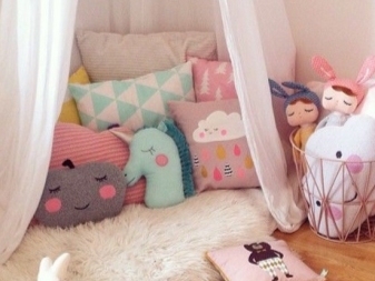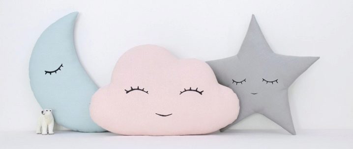 - Dekorativ Kinderkissen können eine harmonische Ergänzung zum Innenraum des Kinderzimmers sein. Einer der Hauptvorteile der Produkte ist eine große Auswahl an Designs und Farben, unter denen jeder Elternteil die interessante Variante finden kann.