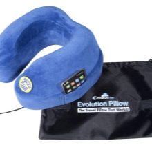 Dieses auf den ersten Blick übliche Kissen ist etwas modernisiert. Es hat gute orthopädische Eigenschaften, hilft den Kopf zu halten, beseitigt den Druck vom Hals. Selbst wenn Sie die Position ändern, werden Sie keine Schwerkraft fühlen. Das Produkt kommt mit einer Tasche, die bequem an jedem Gepäck befestigt werden kann. Es gibt spezielle Schiebeschalter, mit denen Sie das Produkt an Ihre Bedürfnisse anpassen können. In der Seitentasche passt bequemer MP3-Player. Das Modell unterscheidet sich in seinen beeindruckenden Abmessungen und erheblichen Kosten, aber die Bequemlichkeit des Produkts ist auf dem Höhepunkt.