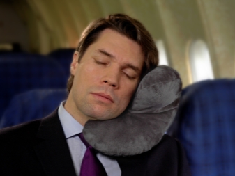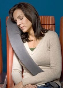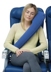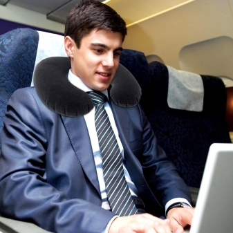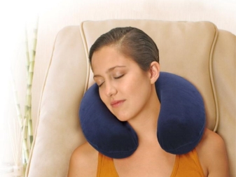 Pillow-Kragen. Produkttyp ist ein Bagel, der den Hals umhüllt. Ein solches Hufeisen ermöglicht es Ihnen, das Produkt im Sitzen zu benutzen. Es wird besonders empfohlen, es für Leute zu verwenden, die eine lange Zeit in einer sitzenden Position verbringen, zum Beispiel Reisende, Büroangestellte. Ein kleines Minus ist die Einschränkung der Sicht der Person, aber Sie können bequem im Sitzen schlafen.
