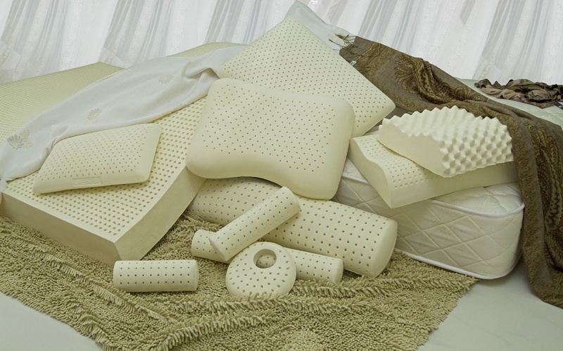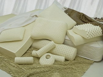 Latex. Das Produkt wird die Form des Kopfes einer Person annehmen, die ruht. Solche Modelle nehmen jedoch schnell ihren ursprünglichen Zustand an. Solche Produkte für den Schlaf verursachen keine Allergien. Es ist einfach und einfach, sich um sie zu kümmern, sie zu reinigen und in Schreibmaschinen zu waschen.