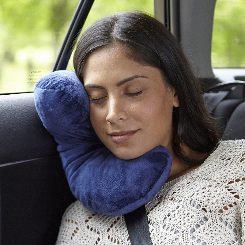 Dieses Kissen zeichnet sich durch viele Funktionen aus. Dank ihrer interessanten Form kann sie ihr Kinn an Ort und Stelle halten und ihm nicht erlauben, sich nach vorne oder seitwärts zu neigen. So können Sie sich ausruhen und erholen. Der einzige Nachteil des Modells ist, dass es nur mit Unterstützung gegen eine Wand oder eine Partition verwendet werden kann. Außerdem kann der Rückenbereich des Produkts herausrutschen, wenn Sie es nicht gut befestigen können. Ein tolles Optionsmodell wird für Passagiere am Fenster sein. Die Kosten für das Produkt sind nicht zu billig.