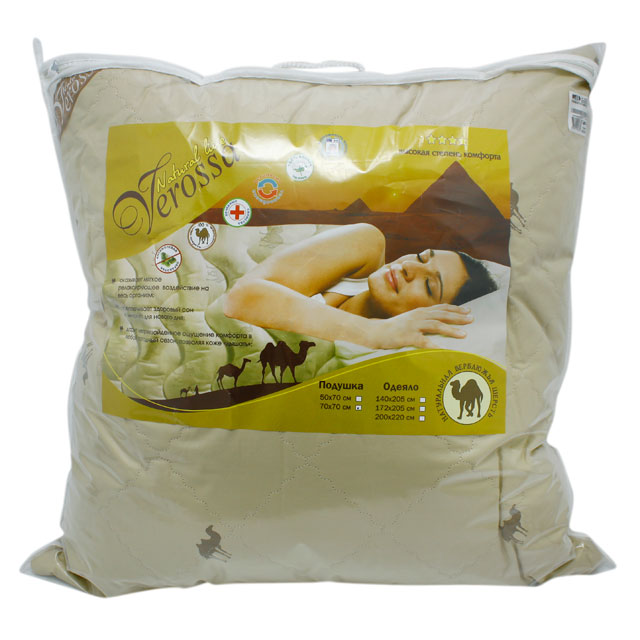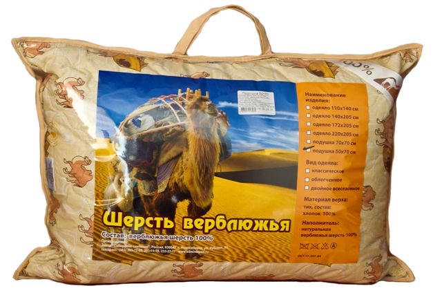 - Ausgezeichnete Thermoregulation. Da Kamele in Wüsten leben, müssen sie starke und deutliche Temperaturabfälle ertragen. Ihre Wolle ist perfekt an solche Bedingungen angepasst.Mit einem Kissen aus solchem Material werden Sie sich sowohl in der Sommerhitze als auch in der kalten Jahreszeit wohl fühlen.