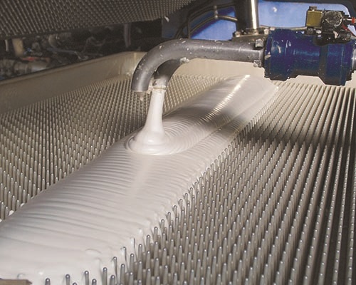 Kissenfüller wird auf zwei Arten hergestellt. Auf dieser Basis kann die Dichte unterschiedlich sein. Nach der Dunlop-Technologie (gegossenes Format, seit 1929 verwendet) wird es mit Luft gesättigt, in einer speziellen Zentrifuge getränkt, die vorbereiteten Formen mit Spikes gefüllt (mit deren Hilfe Löcher im Material gebildet werden) und erhitzt. Nach der Polymerisation werden die "gegossenen Rohmaterialien" gewaschen und dann getrocknet.