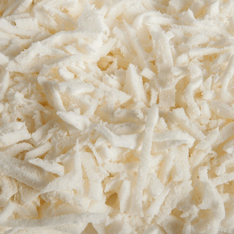 Künstliches Material - ein Analogon von Naturlatex, nahe an Eigenschaften und Leistungsmerkmalen. Dieses Produkt wird Polyurethanschaum genannt - es ist ein modernes Material mit einer feinporigen Struktur, die weit von dem üblichen Schaumgummi entfernt ist und einen kleinen Prozentsatz an Latexgehalt aufweist, aufgrund dessen es elastisch ist. Die Struktur dieses Füllstoffs ist steifer, er ist qualitativ schlechter als das natürliche Gegenstück und gewinnt nur im Preis.