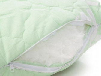 Es lohnt sich, auf das Material zu achten, aus dem die Hülle genäht wird: besser ist es, wenn es sich um ein dichtes Naturgewebe (Zecke, Kattun, Jacquard) handelt, auch Mikrofaser ist beliebt. Der Zweck der Abdeckung besteht darin, den Füller fest im Kissen zu halten. Überprüfen Sie daher die Qualität der Schneiderei: nichts sollte herausfallen oder herauskriechen und die Stiche sollten gleichmäßig und dauerhaft sein.