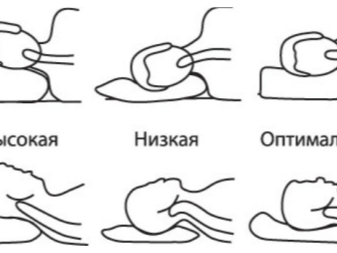 Die Höhe des Kissens sollte ungefähr gleich der Breite der Schulter der darauf schlafenden Person sein (durchschnittlich 10-15 cm). Wenn Sie die falsche Wahl treffen, können Sie Kopfschmerzen oder Schmerzen im Halsbereich aufgrund unregelmäßiger Durchblutung erleiden.Die Steifigkeit des Kissens hängt von der Haltung ab, in der Sie sich ausruhen möchten. Weiche Kissen sind gut für diejenigen, die gerne auf dem Bauch schlafen. Wer sich lieber auf dem Rücken ausruht, fühlt sich auf einem mittelharten Produkt wohl.