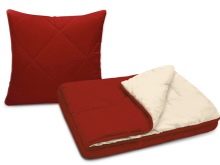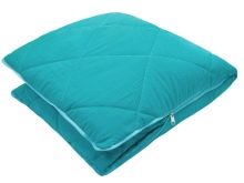 Universal-Produkt ist sehr bequem zu verwenden, denn in wenigen Sekunden verwandelt sich ein weiches Kissen in eine warme Decke. Das Design ist einfach: Die Decke ist so aufgerollt, dass es auf beiden Seiten blitzt. Es fixiert auch einen Teppich, der anschließend die Form eines Quadrats annimmt.