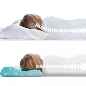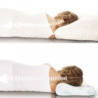 - "Respekt". Im Gegensatz zum ersten Modell hat die "Respecta" zwei Rollen, deren Unterschied 2 cm hoch ist. Die richtige Breite ermöglicht es, den Kopf so auf das Kissen zu legen, dass sich der Hinterkopf zwischen den Rollen befindet, sodass der Kopf nicht zur zweiten Rolle angehoben werden muss. Dieses Modell dient als ein gutes Werkzeug für die Prävention von Krankheiten wie IRR, Fibromyolgie. Abhängig von der Position, in der die Person einschläft, erhält das Kissen die Richtung. Wenn "auf der Rückseite" positioniert, wird es mit einer großen Rolle nach unten gedreht. Wenn die Position "auf dem Bauch" ist, sollte ein kleines Kissen unter den Nacken gelegt werden.