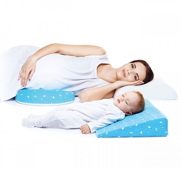 - "Clin". Kissen-Transformator 2 in 1 für werdende Mütter und Babys. In der Regel auf der Seite liegend (dies ist die einzige Position während des Schlafes und der Ruhe der werdenden Mütter) wegen der Schwere des Fötus, möchten Sie Ihren Bauch auf der Oberfläche des Bettes senken. Und das zwingt Sie unweigerlich dazu, eine Drehung der Wirbelsäule zu machen.Und der Magen muss schon in dieser Position das gesamte Körpergewicht tragen, was auch Beschwerden verursacht. Um die Wirbelsäule nicht zwangsweise in eine Zwangsstellung zu bringen, ist ein kleines Kissen des Transformators vorgesehen. Der Winkel von 12 Grad ist genau die notwendige Menge, damit der Bauch der zukünftigen Mutter nicht nach unten zieht, die richtige Position behält und die Rückenmuskulatur entlastet. Die Verwendung eines Kissens ist in erster Linie notwendig, um die Position des Fötus zu normalisieren sowie Dehnungsstreifen zu verhindern und Spannungen und Beschwerden im Bauchwandbereich zu lindern.