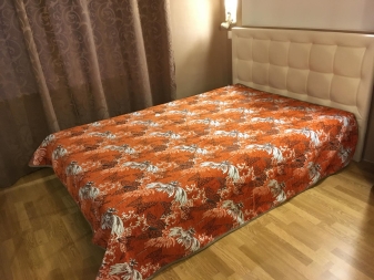 - Das Produkt muss der Größe des Bettes entsprechen. Wenn die Bettdecke klein ist und es nicht genug ist, um aus dem Bett zu hängen, dann wird die Bettwäsche freigelegt und das Aussehen eines solchen Bettes wird unordentlich sein. Wenn das Produkt zu groß ist, führt dies auch zu einer ungenauen Sicht auf Ihr Bett. Es wird auf den Boden ziehen und Staub sammeln. Außerdem wird es keine schönen Falten an den Ecken des Bettes geben.