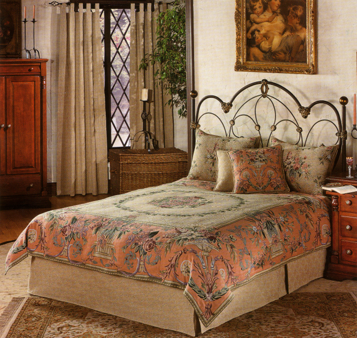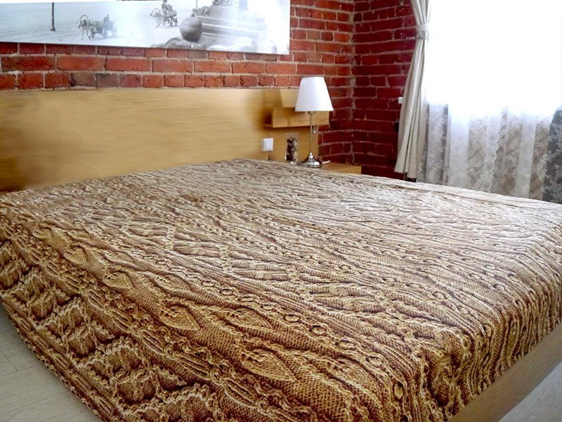 - "Verona". Dieses Modell ist in Pavlovsky Posad gemacht. Es hat die originale Färbung und imitiert das Stricken mit Zöpfen. Fertig in braun. Diese Abdeckung wird im Schlafzimmer Landhausstil gut aussehen. Die Kosten betragen etwa 2000 Rubel.