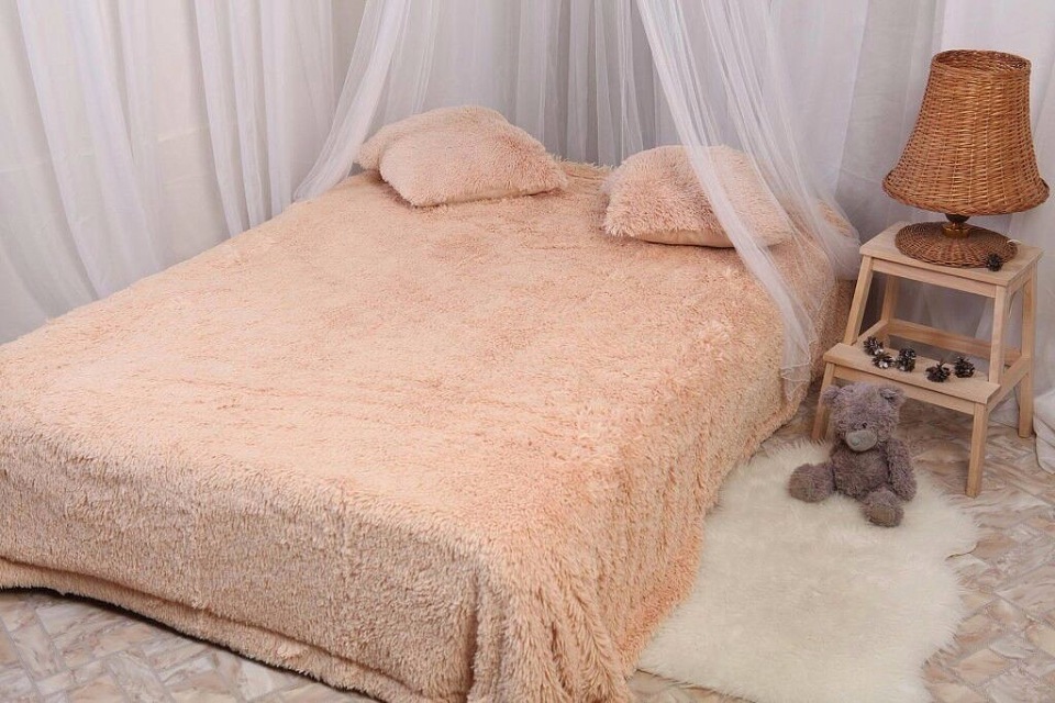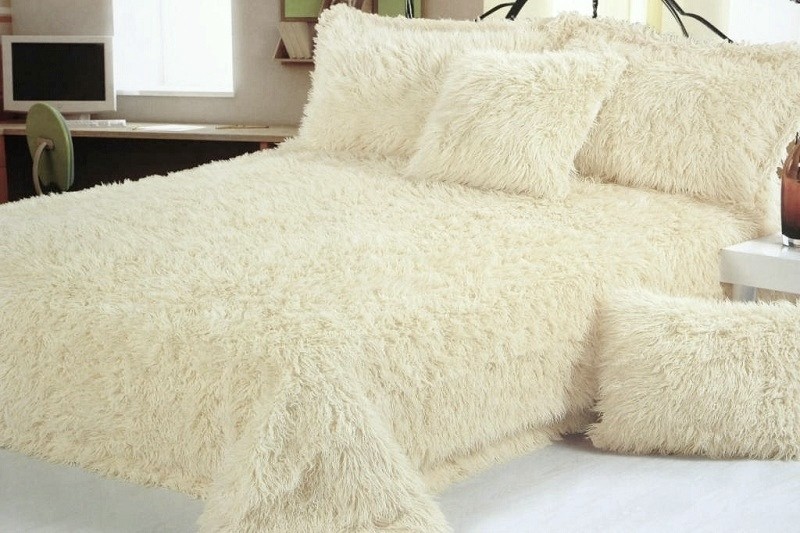 Aber flauschige Tagesdecken haben ihre Nachteile. Wenn Sie ein leichtes Produkt kaufen, müssen Sie es sehr oft waschen, da synthetisches Fell schnell Staub und Schmutz absorbiert. Wenn du sie ständig versteckst und sie zu aktiv verwendest, wird sich auch ein Haufen daraus herausschleichen.