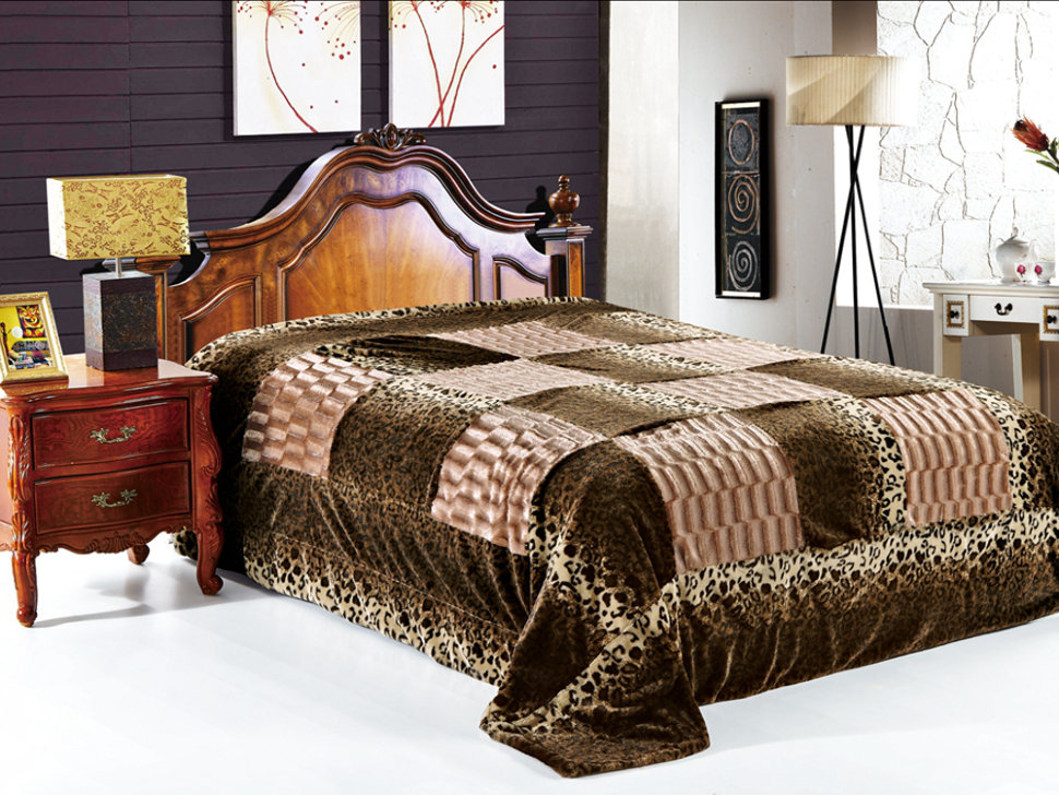 - Mit Mustern. Drucke, die die Oberfläche des flauschigen Produkts schmücken, müssen nicht unbedingt bestialisch sein. Für die Dekoration ihrer Bezüge wählen die Hersteller oft auch florale oder geometrische Muster. Schöne Rosen, die die Oberfläche einer flauschigen Decke schmücken, sehen sehr süß aus und passen in das gemütliche Innere eines kleinen Zimmers.