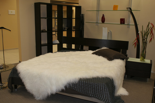 Und vergessen Sie natürlich nicht, dass Sie den Stil, in dem das Zimmer eingerichtet ist, berücksichtigen müssen. Wenn das ein Klassiker ist, wäre eine luxuriöse Imitation eines Zobels oder einer Bärenhaut im Raum durchaus angebracht. Aber in einem modernen Raum im Stil von High-Tech oder modern, wird es besser sein, etwas kurz und einfach aussehen. Zum Beispiel eine ordentliche Hülle aus kurzer dunkler Wolle.
