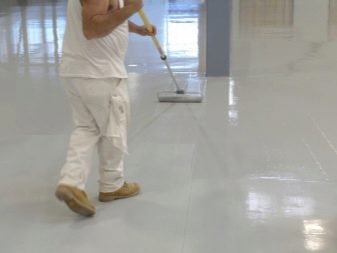Was die Anwendung von Farbe betrifft, ist es vor dem Beginn der Bemalung notwendig, die beigefügten Anweisungen sorgfältig zu studieren, da einige Arten von Emails auf trockenem Beton aufgetragen werden, andere auf einer nassen Oberfläche. Damit der Farbstoff gleichmäßig und mit der bestmöglichen Qualität aufgetragen wird, sollte der Betonboden vor Beginn des Prozesses gründlich von Staub und verschiedenen Verunreinigungen gereinigt und entfettet werden.Um die Haftung zu verbessern, empfehlen Experten auch die Verwendung von Primern. Die Grundierung der Grundierung trägt auch dazu bei, die Oberfläche zu ebnen und Risse zu beseitigen, was die Lebensdauer der Farbe erheblich verlängert und die ästhetische Qualität der Beschichtung verbessert.