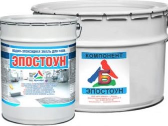- Zweikomponenten-Emaille "Epostoun" enthält verschiedene Arten von Harzen, einschließlich Epoxy, mineralische Komponenten und andere Substanzen, die zum besten Schutz des Betonbodens vor allen möglichen äußeren Faktoren beitragen. Farbstoff bezieht sich auf die Art von Wasser-Epoxy und kann in Räumen mit hoher Luftfeuchtigkeit verwendet werden. Die Trocknungszeit der Beschichtung beträgt etwa einen Tag, und nach der vollständigen Verfestigung wird ein homogener halbmatter Film gebildet, der für die menschliche Gesundheit absolut sicher ist.