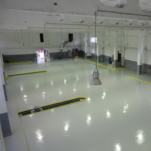- Beschichtung von Betonoberflächen, Werkstätten, Autowerkstätten, Hangars und Parkplätzen;