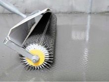 - Nadelrolle notwendig, um Luftblasen im ungehärteten Betonauslauf zu beseitigen. Beim Nivellieren einer Betonlösung kann Luft eindringen und in der Beschichtung verbleiben. Aus diesem Grund können Mikrorisse bald auftreten, dies wird die Lebensdauer des Betonpflasters verkürzen. Wenn Sie durch die Walze auf frischem Beton gehen, werden Sie das Problem des Auftretens von Luftblasen los.