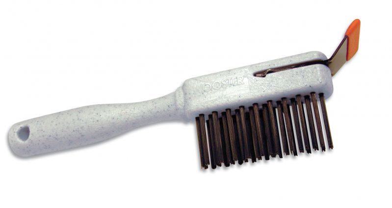 - Metallbürste zum Entschichten von Beton. Es wird dazu beitragen, die Bildung von Rauhigkeit auf der fertigen Beschichtung zu vermeiden.