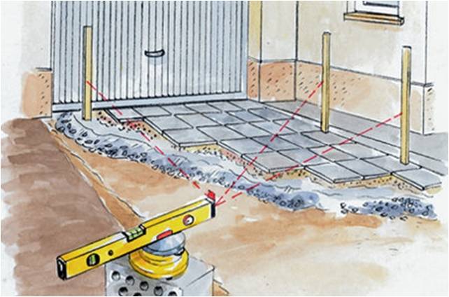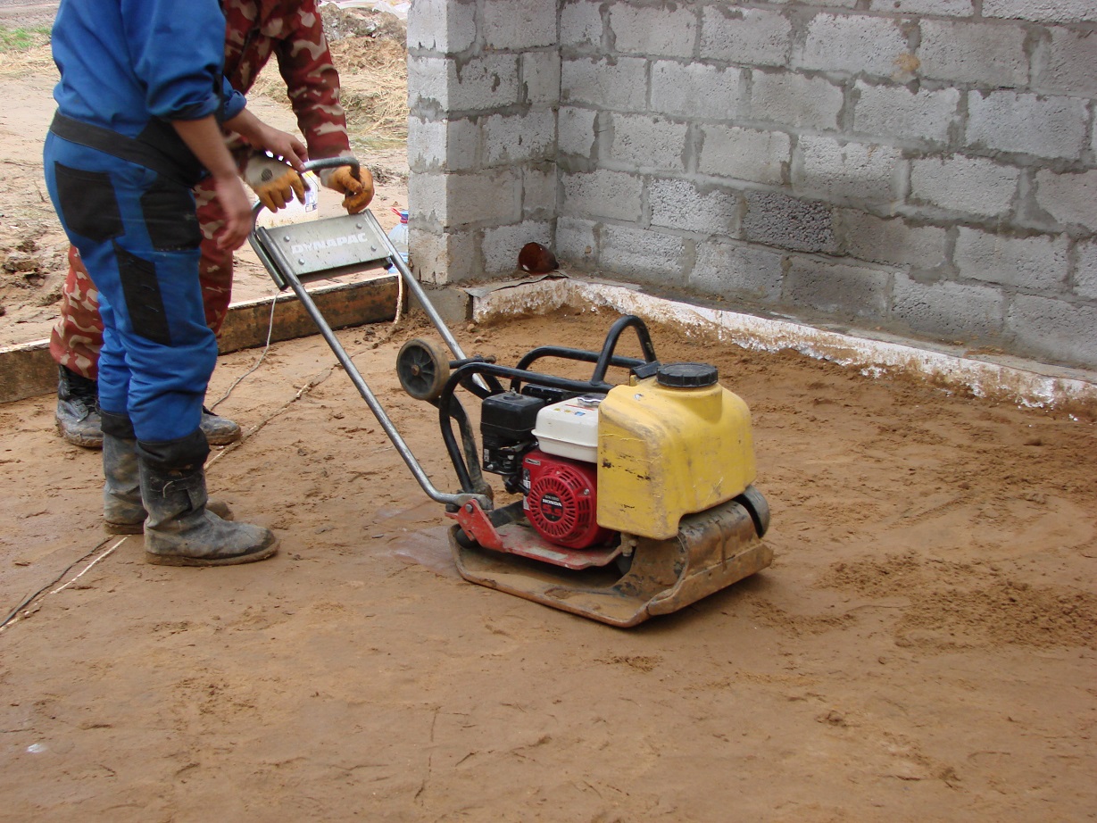 - Boden verdichtet. Es ist sehr wichtig, dass der Boden gut verdichtet ist, sonst wird sich der Boden zusammendrücken und mit der Zeit brechen.