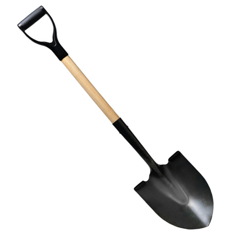 - Schaufel Ohne es, nirgendwo.Dieses Werkzeug ist nützlich in der Phase der Vorbereitung - Nivellierung von Sand und Erde, Aushub der Grube unter dem Boden im ersten Stock. Es wird benötigt, um alle Schüttgüter zu bewegen und Betonlösungen zu laden.