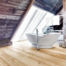 Diese Art von Holz hat eine sehr schöne Farbe und Textur. Außerdem hat dieses Material eine hohe Festigkeit und Härte. Sein Hauptmerkmal ist jedoch, dass Lärche im Gegensatz zu anderen Holzwerkstoffen völlig resistent gegen Feuchtigkeit ist. Dank dieser Qualitäten wird das Material häufig für die Herstellung von Parkettböden, Böden für Terrassen, Badezimmer und Bäder verwendet. Es kann auch in der Umgebung des Pools verlegt werden.