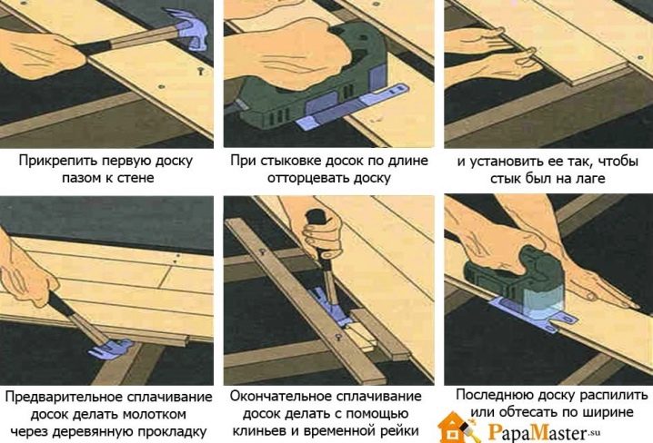 - Während des Verlegens ist es notwendig, das Niveau des Bodens sorgfältig zu kontrollieren - es muss perfekt eben sein. Die Nichteinhaltung dieser Bedingung kann dazu führen, dass die Platine in der Zukunft zu knarren oder zu brechen beginnt.