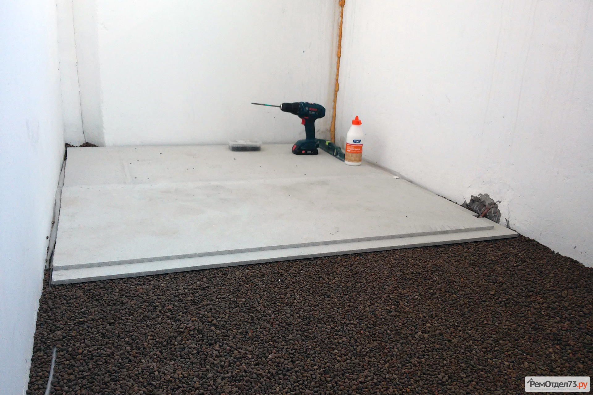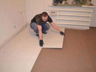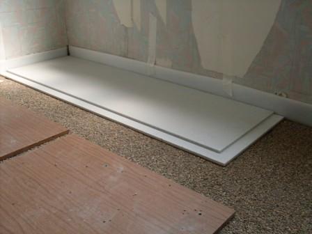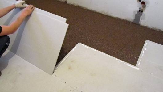 - Es ist möglich, die Basis mit zusätzlicher Wärme- und Wärmeisolierung zu versehen.Zu diesem Zweck ist es zulässig, einen Penoplex oder Trockenbau unter die Gipsfaserplane zu legen.