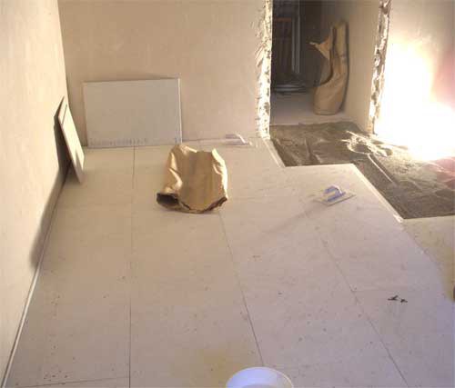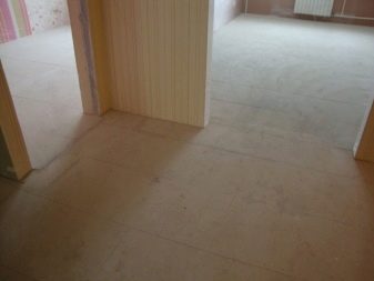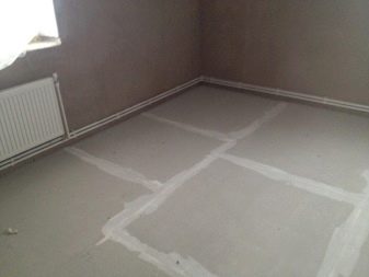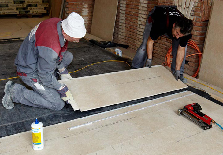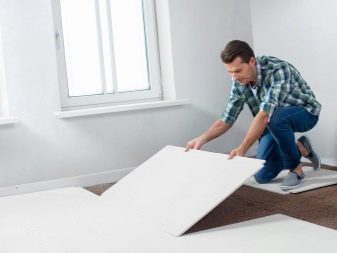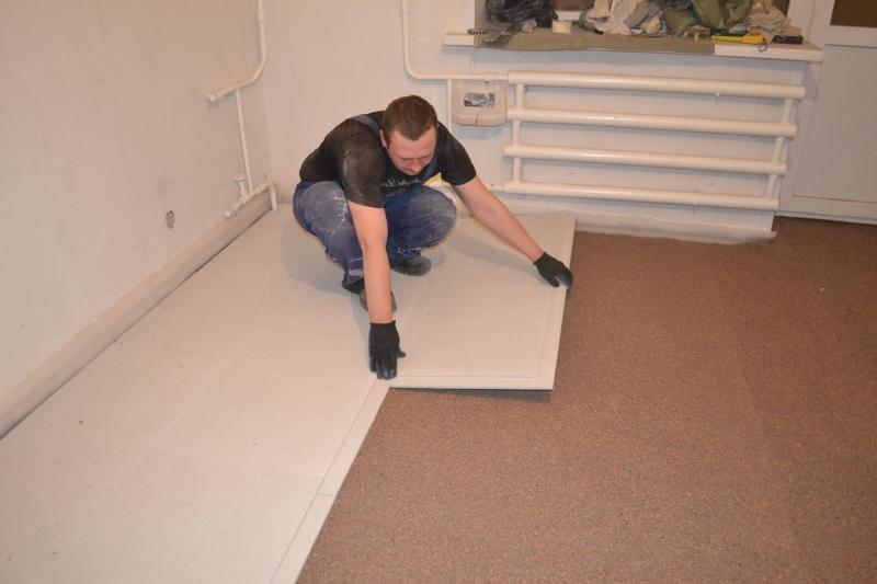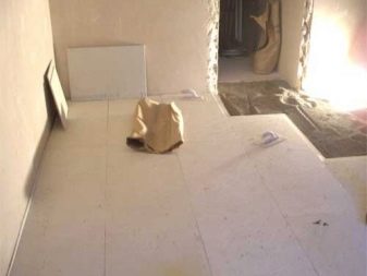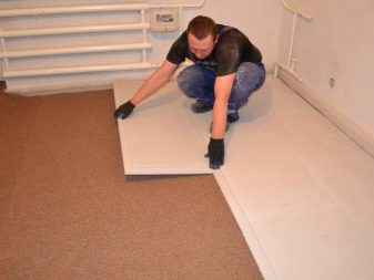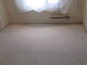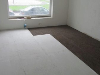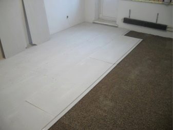Legen Sie solche Materialien ausschließlich auf einen trockenen und gut vorbereiteten Boden.. Es ist auch zu beachten, dass beim Einbau von Gipsfaserplatten viele Probleme mit dem Zement-Sand- oder Beton-Estrich auftreten können, da der Untergrund für solches Material vollständig trocken sein muss. In Fällen, in denen die Gipskartonplatte als Fußboden auf einem Unterboden verwendet wird, ist das Ergebnis eine trockene und saubere Unterlage. Es ist zulässig, sofort dekorative Deckbeschichtungen darauf zu legen.