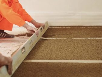 - Für die Fertigstellung des Bodens ist möglicherweise ein zusätzlicher Installationsprotokoll erforderlich. Alles hängt von dem spezifischen dekorativen Material ab, das Sie auf die Basis des Hauses oder der Wohnung legen werden.