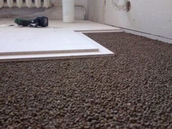 - Jetzt müssen Sie den Blähton auffüllen. Diese Elemente müssen auf das Dampfsperrmaterial gegossen werden. Blähton sollte einen Bruchteil von nicht mehr als 0,5 cm haben.Es wird empfohlen, für solche Arbeiten ein Atemschutzgerät zu tragen.