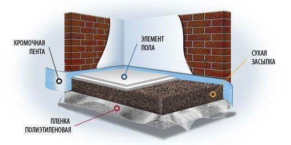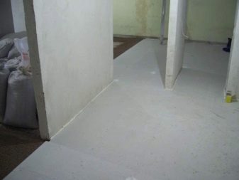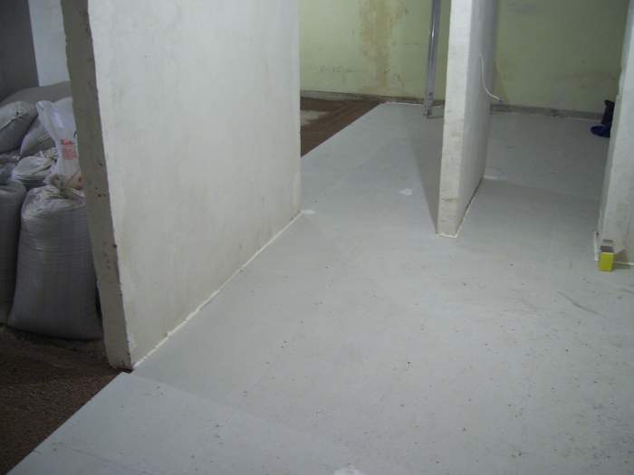 - Danach ist der Boden fertig zum Imprägnieren. Erstens, auf der Grundlage der Notwendigkeit, einen Film aus Polyethylen zu verlegen, wenn die Überlappung konkret ist. Wenn der Boden aus Holz ist, dürfen Pergament und bituminiertes Papier darauf gelegt werden.